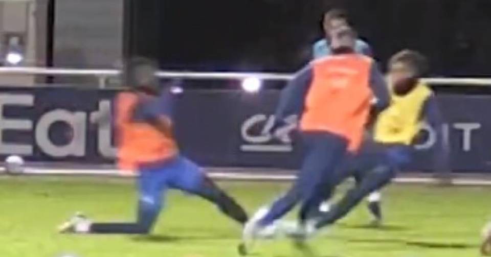 El choque entre ambos jugadores se dio en el último tramo de la sesión en la concentración francesa, lo que hizo que el delantero de 25 años, no pudiera continuar.