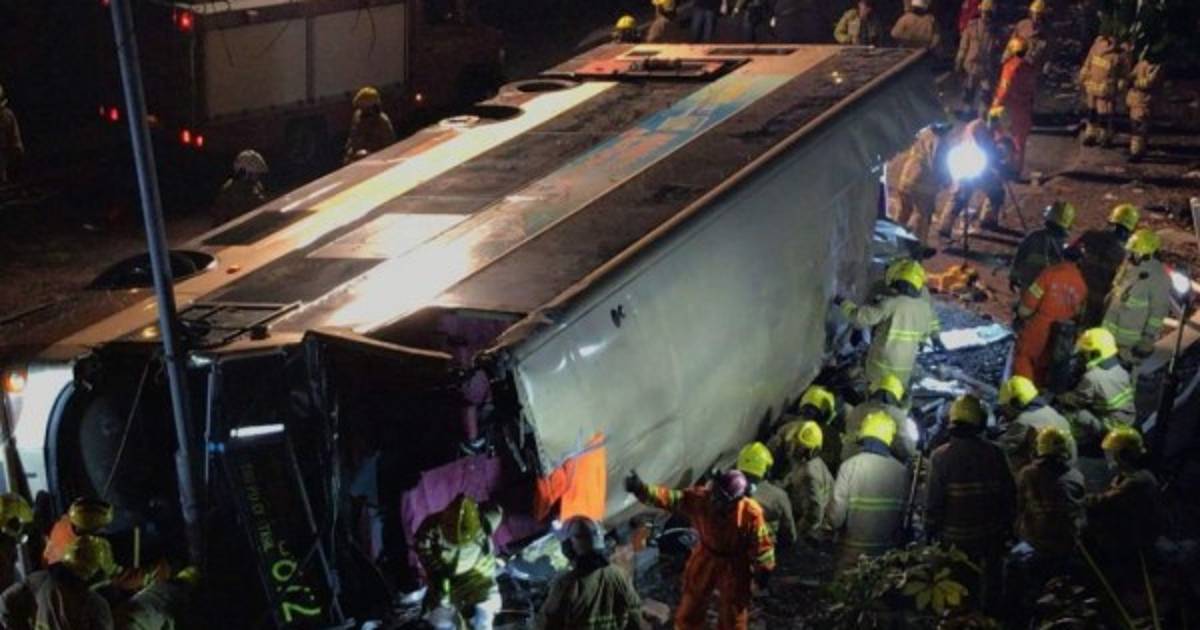 Diecinueve personas murieron y al menos 40 resultaron heridas hoy en un accidente de autobús en Hong Kong después de que el vehículo de dos alturas se saliera de la carretera y volcara en una autovía al norte de la ciudad.