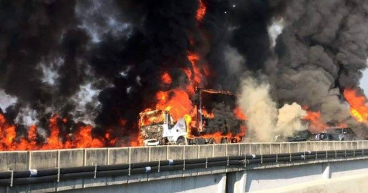 La colisión múltiple provocó una explosión y un incendio que destruyó a varios de los autos y un enorme embotellamiento, informó la Policía de Carreteras.
