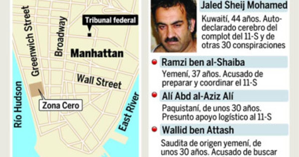 El autoproclamado cerebro de los atentados, Jaled Sheij Mohamed, y cuatro presuntos cómplices serán juzgados por un tribunal federal de Nueva York en una fecha aún no determinada, indicó Eric Holder, quien añadió que las autoridades estadounidenses pedirán la pena de muerte.