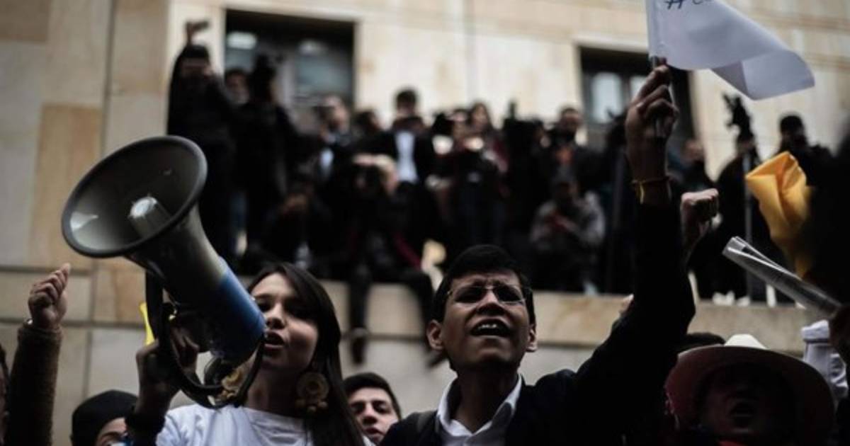 También hicieron batucadas y llevaron esqueletos de papel con fotografías de víctimas del conflicto armado colombiano, así como otro cartel que rezaba: 'No más Uribe, no más corrupción'.