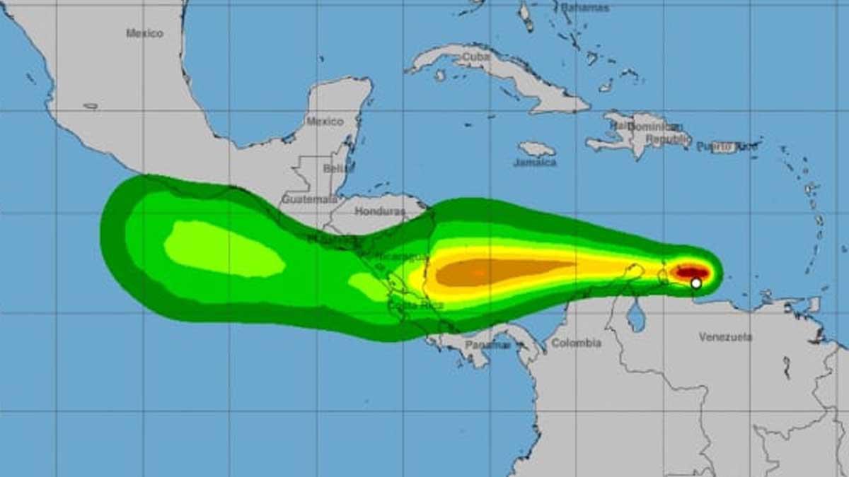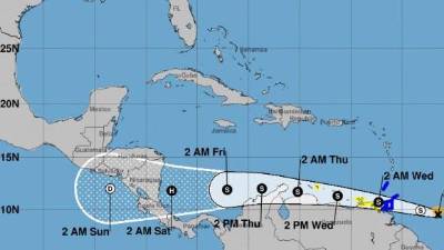 “Se espera que se convierta en una tormenta tropical mientras se mueve hacia el oeste a través del sur del Caribe”, indicó el NHC, organismo con sede en Miami dependiente de la Administración Nacional de la Atmósfera y los Océanos (NOAA). La probabilidad de formación de un ciclón en 48 horas es del 80 % en el pronóstico para 48 horas y de 90 % en el de cinco días.