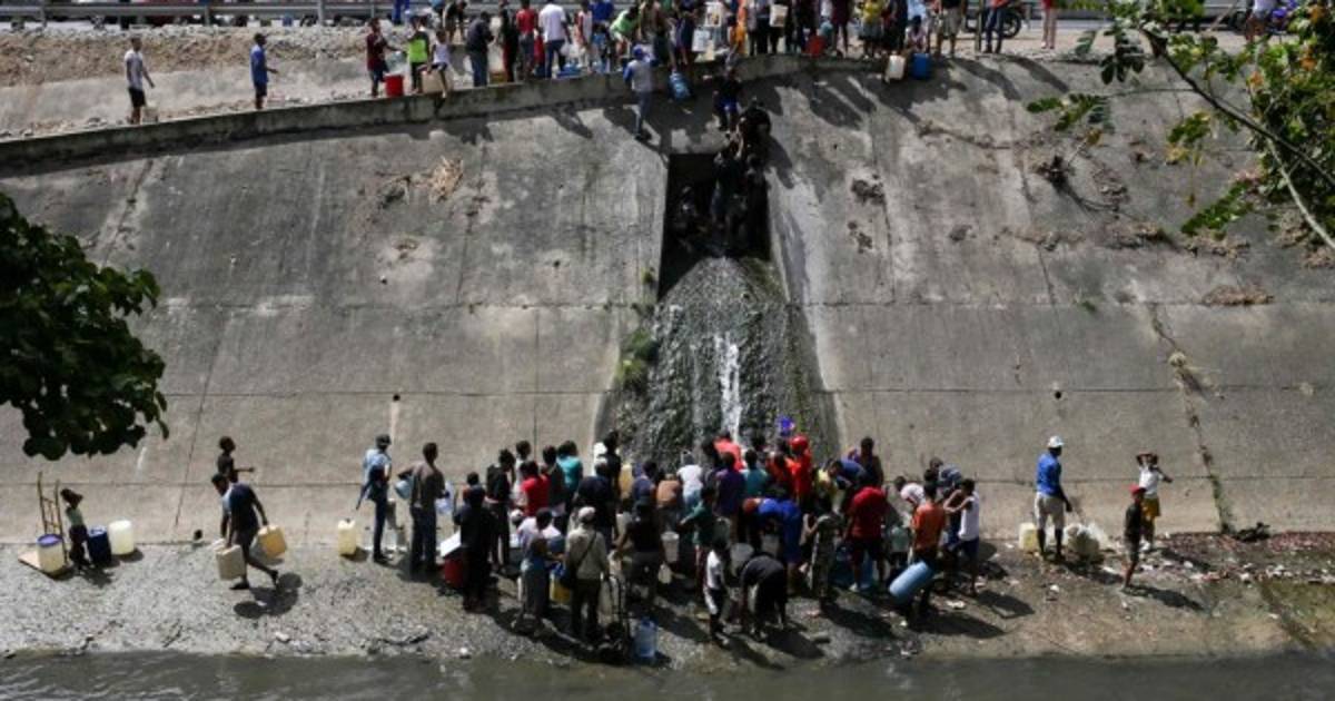 Muchas casas tienen tanques de agua porque siempre hay racionamiento en Venezuela, pero las bombas no funcionan sin energía. Una multitud forcejeaba con militares que le impedían cargar agua que fluía de una pared al costado del contaminado Río Guaire, en Caracas. Muchos hacen cola en tomas de agua al pie del cerro Ávila.