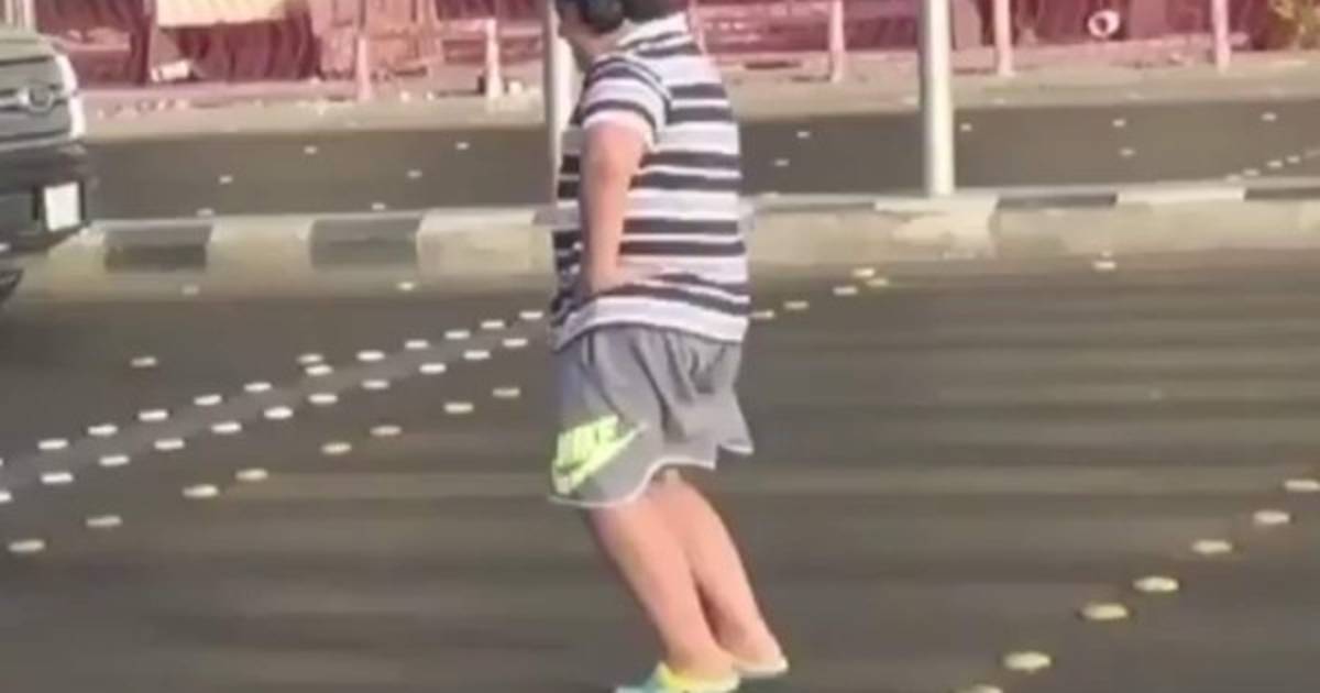 Las imágenes muestran al adolescente pararse en un cruce peatonal frente a varios carros que esperan en el semáforo en rojo.