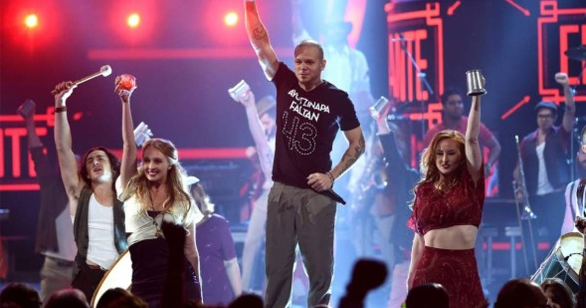 En la apertura de los Grammy Latinos, el dúo puestorriqueño interpretó el tema 'El Aguante' y al final de la presentación Perez gritó ' Ayotzinapa somos todos', desatando una lluvia de mensajes de apoyo en la red social Twitter.