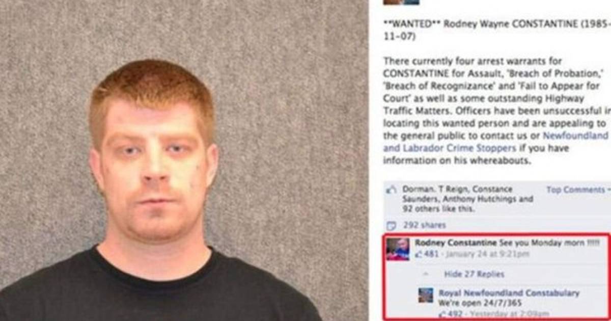 Constantine era buscado por cargos de asalto y se entregó a la policía de la provincia de Terranova y Labrador luego de que esta publicara su foto de búsqueda en Facebook y mantuvieran un intercambio de mensajes en la red social, de acuerdo con el portal 'CBC News'.