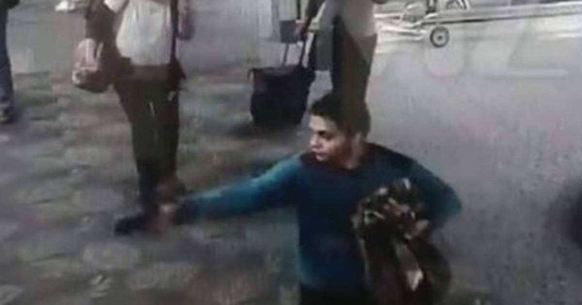 Una persona aparentemente herida ingresa en el campo de la cámara y vuelve a salir. El estupor se apodera de todos. Una mujer se refugia detrás de un carrito de equipajes; otras se arrojan al suelo.