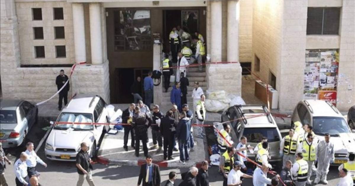 Escasos minutos antes de las siete de la mañana, dos palestinos, identificados posteriormente por la policía como Ghasan Abu Jamal y Odai Abu Jamal, de Jerusalén Este, entraron en la sinagoga de Kehilat Bnei Torah, en el barrio ortodoxo de Har Nof, en el Oeste de la metrópoli.