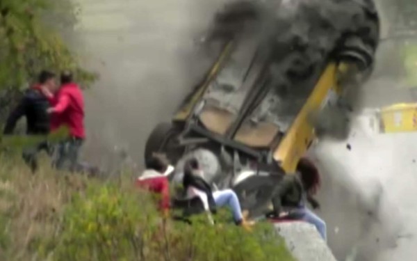 Los pilotos de un vehículo de Rally en Italia se salieron de la pista y cayeron sobre los espectadores.