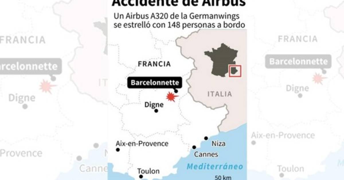 Un helicóptero de la Gendarmería confirmó el accidente del avión, que hacía el trayecto entre Barcelona (España) y Düsseldorf (Alemania) y en el que viajaban 142 pasajeros y 6 miembros de la tripulación, que se teme que hayan muerto, según el presidente francés, François Hollande.
