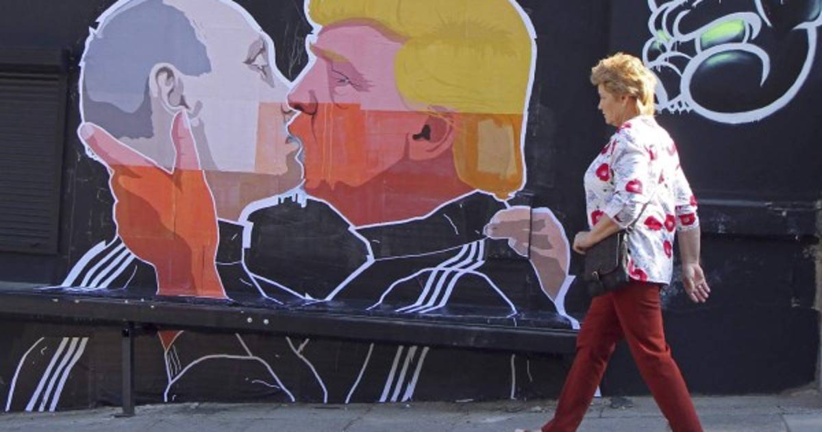 Un grafiti callejero que muestra a Donald Trump y Vladimir Putin besándose en la boca se hizo viral este viernes en Lituania, donde crecen los temores sobre este posible acercamiento.