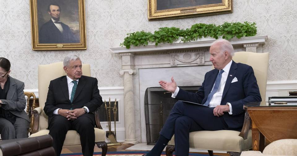 “A pesar de los titulares exagerados que vemos a veces, usted y yo tenemos una relación fuerte y productiva”, expresó Biden durante los primeros minutos de la reunión con López Obrador en el Despacho Oval.