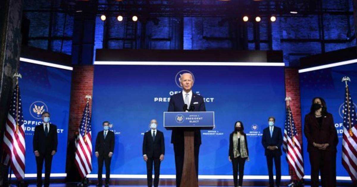 'Es un equipo que refleja el hecho de que Estados Unidos está de vuelta. Listo para liderar el mundo, no para retraerse de él', dijo Biden en su bastión en Wilmington, Delaware, flanqueado por hombres y mujeres enmascarados.