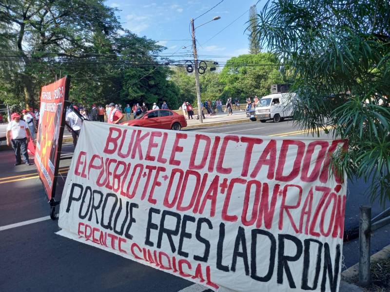 “Bukele dictador”, “Fuera dictadura de Bukele”, “El Salvador dice no a las reformas constitucionales”, “Si hay imposición habrá revolución” “¿Cuál es la ruta?, sacar al que recluta”, “Adiós Unión y Libertad”, “No queremos bitcoin”, “Asamblea Legislativa sin decisiones propias”, dicen los cientos de pancartas que cargan los manifestantes contra la Administración Bukele, en el día de la conmemoración de los 200 años de independencia.