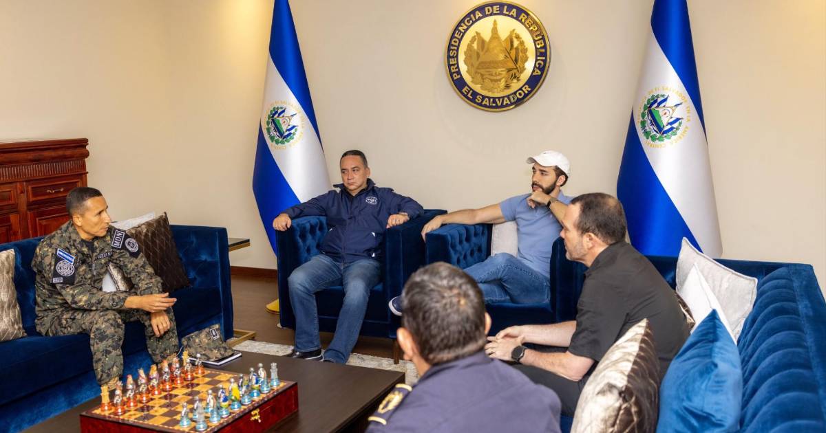 La fuente compartió fotografías en las que se observa a Bukele, sus ministros de Defensa y Seguridad, René Merino Monroy y Gustavo Villatoro, respectivamente, y al titular de la Policía Nacional Civil (PNC), Mauricio Arriaza Chicas.