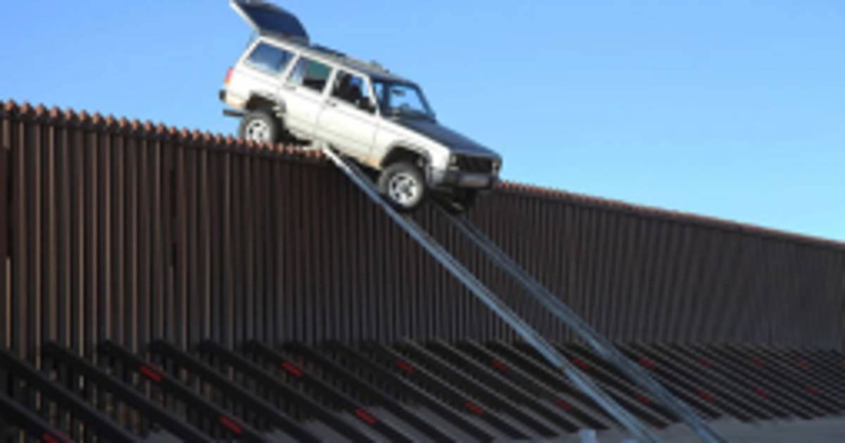 Presuntos traficantes de drogas que intentaban que improvisaron rampas con el objeto de cruzar la frontera con una camioneta todo terreno sobre una cerca fronteriza de poco más de cuatro metros de altura (14 pies) tuvieron que abandonar su plan cuando el vehículo se atoró en la parte superior de la barrera, dijeron el miércoles las autoridades.