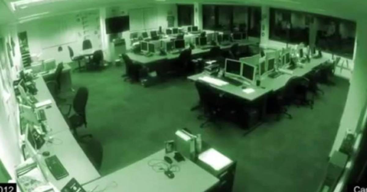 En él, puede verse una oficina completamente vacía que es filmada por una cámara de seguridad.
