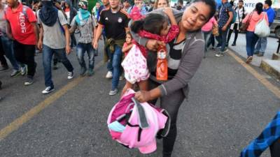 La mayoría de los migrantes son hombres jóvenes, pero también van adultos mayores, mujeres y niños, algunos en brazos.