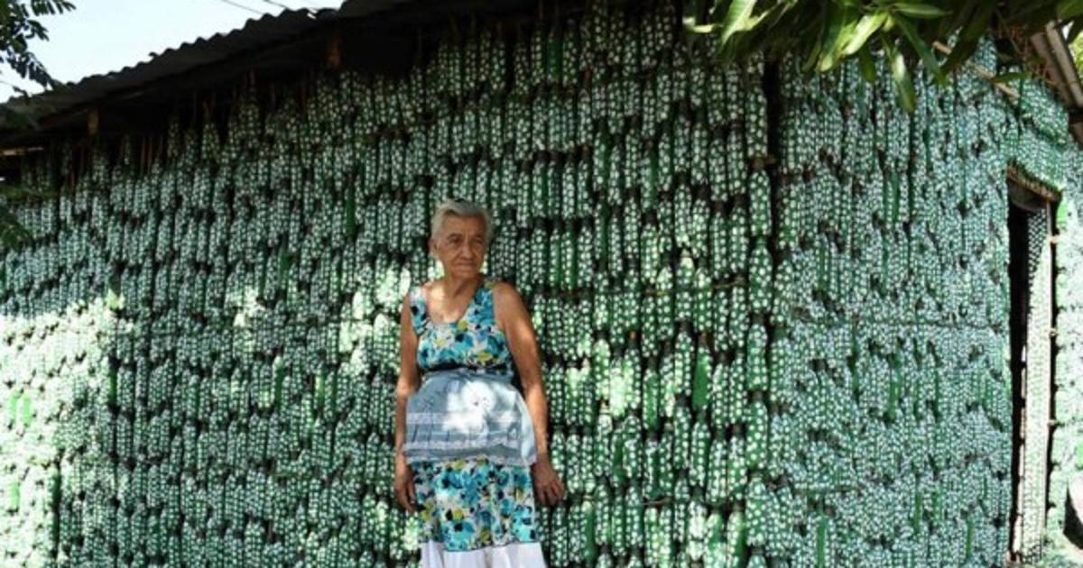 Construida con coloridas botellas plásticas, una pequeña vivienda desafía temporales y temblores en una comunidad del este salvadoreño, donde María Bersabé Ponce, de 86 años, recibe visitantes y goza de su prestigio de 'símbolo del reciclaje' que le reconocen los ecologistas.