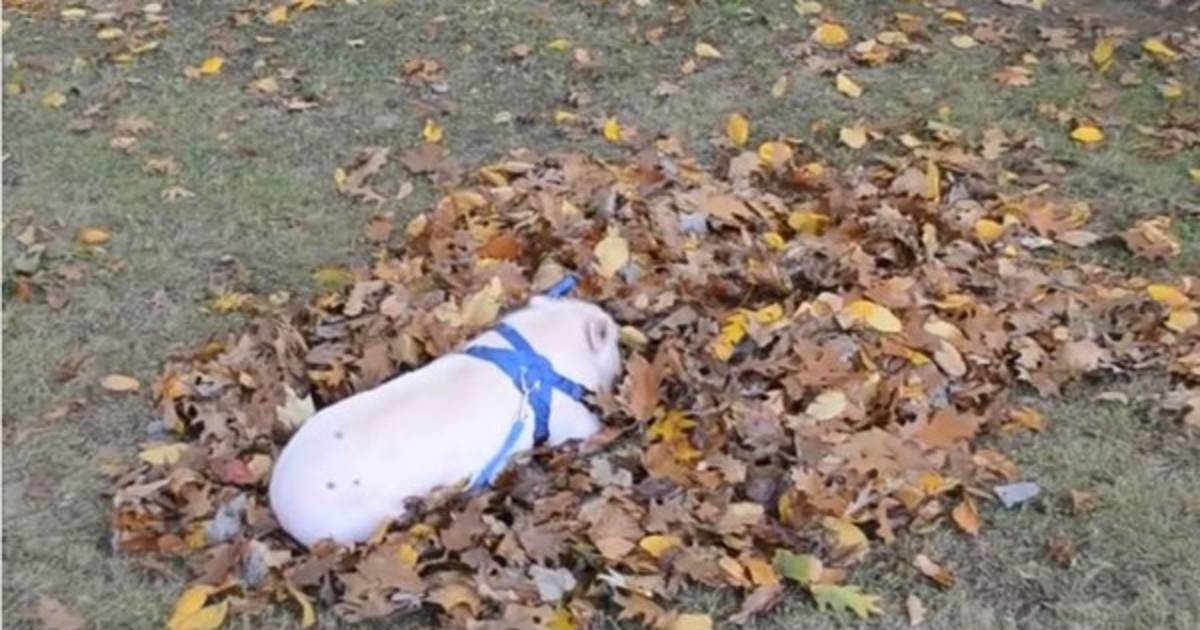 ¿A quién no le gusta jugar con hojas secas? Son muchos los que disfrutan hacerlo y eso incluye a un lindo cerdito.