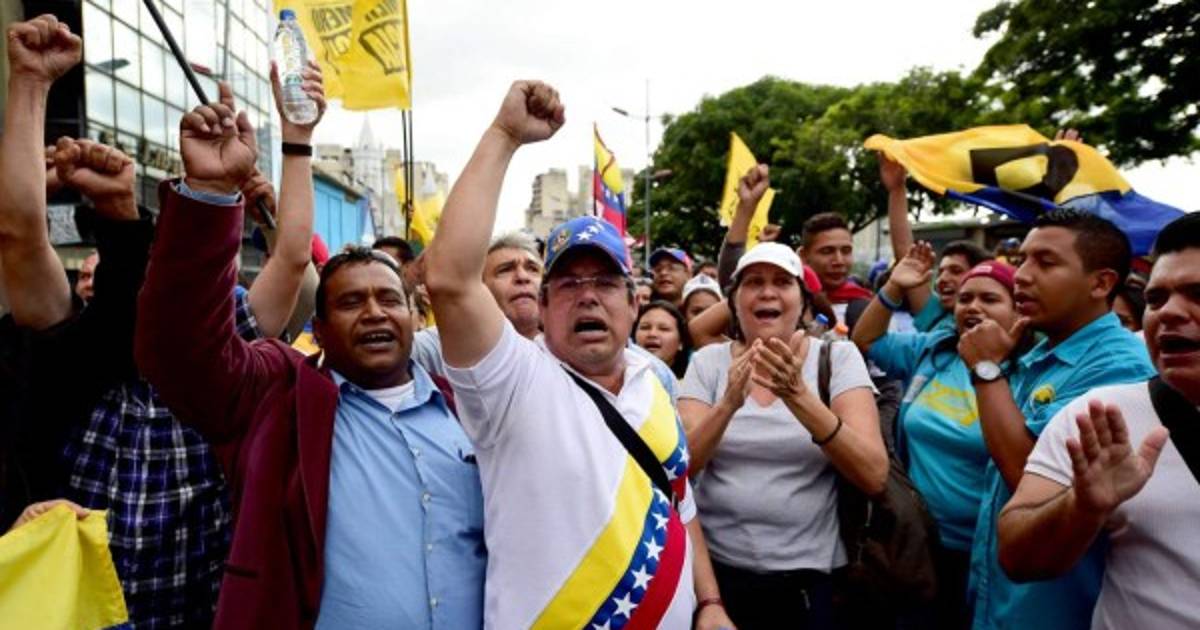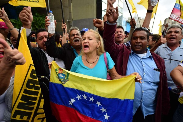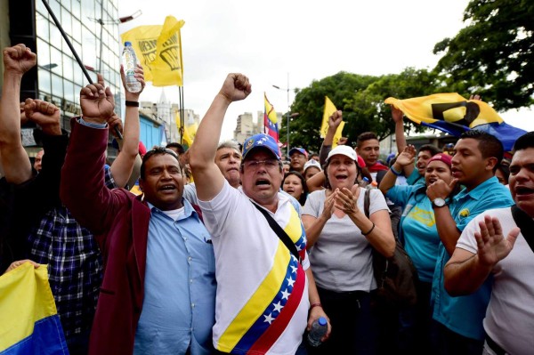 | Partidarios de la oposición venezolana concentración frente a la de la Asamblea Nacional , en Caracas. AFP