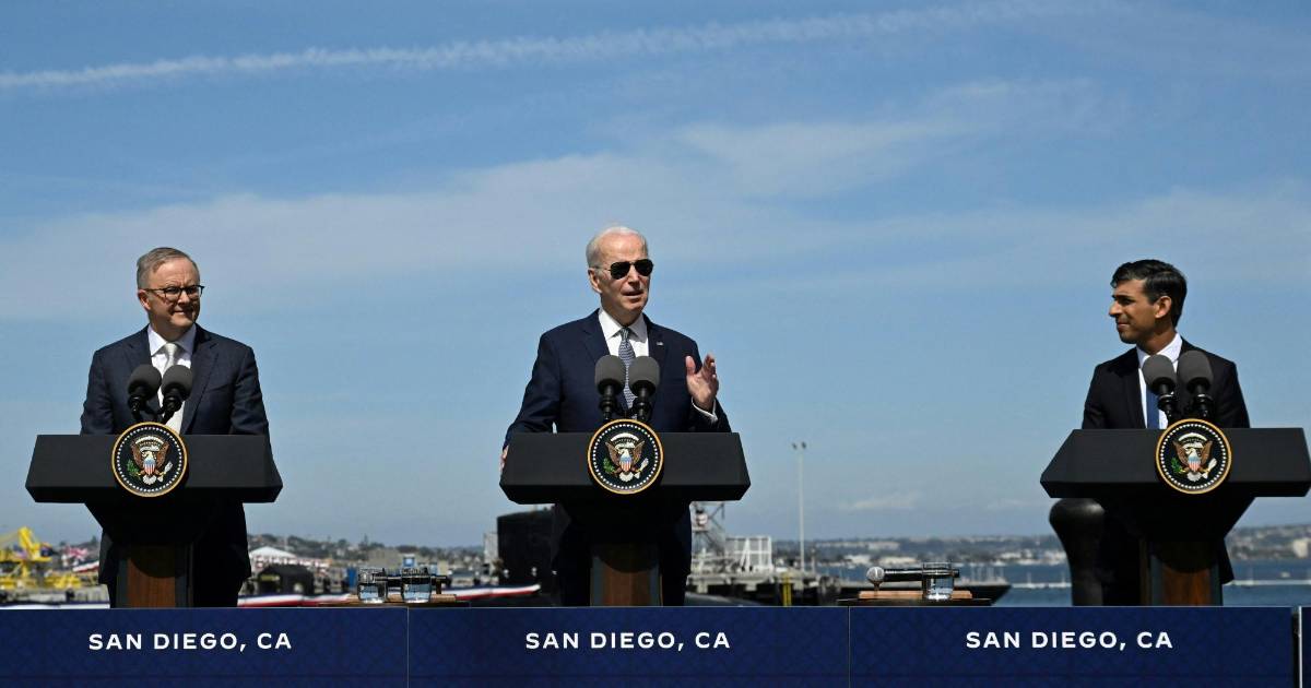 El lunes, el presidente estadounidense, Joe Biden, junto a los primeros ministros de Australia y Reino Unido, Anthony Albanese y Rishi Sunak -respectivamente-, anunció desde la base naval de San Diego una cooperación “sin precedentes”.