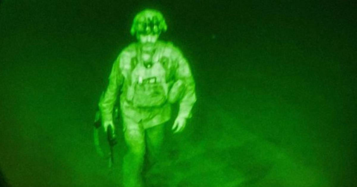 El Pentágono publicó en su cuenta de Twitter una fotografía del militar poco antes de abordar un C-17, el avión militar que despegó del Aeropuerto Internacional Hamid Karzai de Kabul el lunes a las 15.29 horas de la costa este de EEUU (19.29 GMT) y con el que Estados Unidos puso fin a la guerra más larga de su historia.