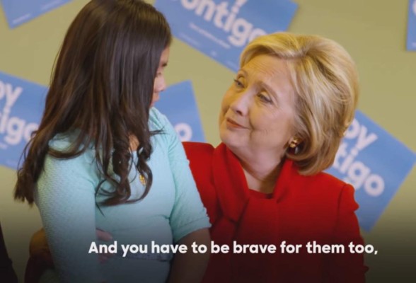 El equipo de campaña de la también exprimera dama de Estados Unidos, divulgó un video titulado 'Valentía', donde se observa a la menor decir a Clinton entre lágrimas, 'Mis padres tienen una orden deportación. Tengo miedo de que ellos sean deportados'.