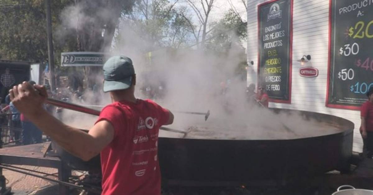Centenares de curiosos que paseaban por el recinto se acercaron para observar y degustar la preparación de este famoso guiso que, si se vuelve a validar el certificado de superación del peso marcado por Guinness, ratificarán el título de guiso más grande del mundo. Texto, fotoy video de EFE.