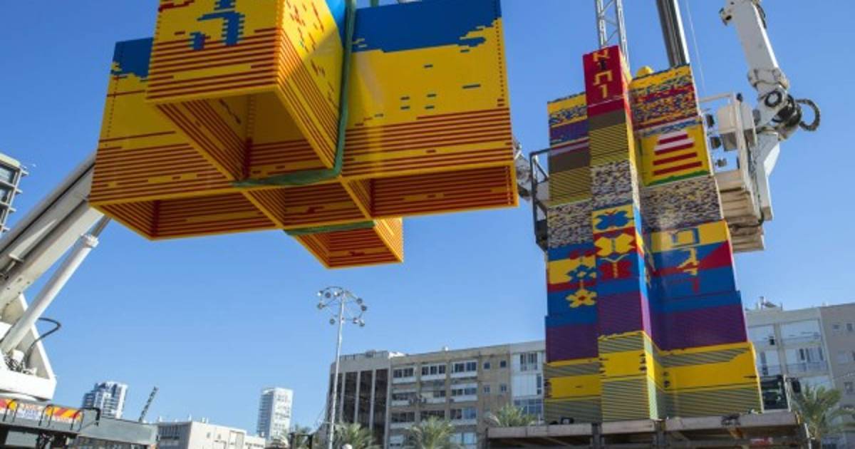 Constituida por más de un millón de piezas, la torre se exhibe durante cuatro días en la plaza Rabin, frente al imponente edificio de la municipalidad de la ciudad costera israelí.