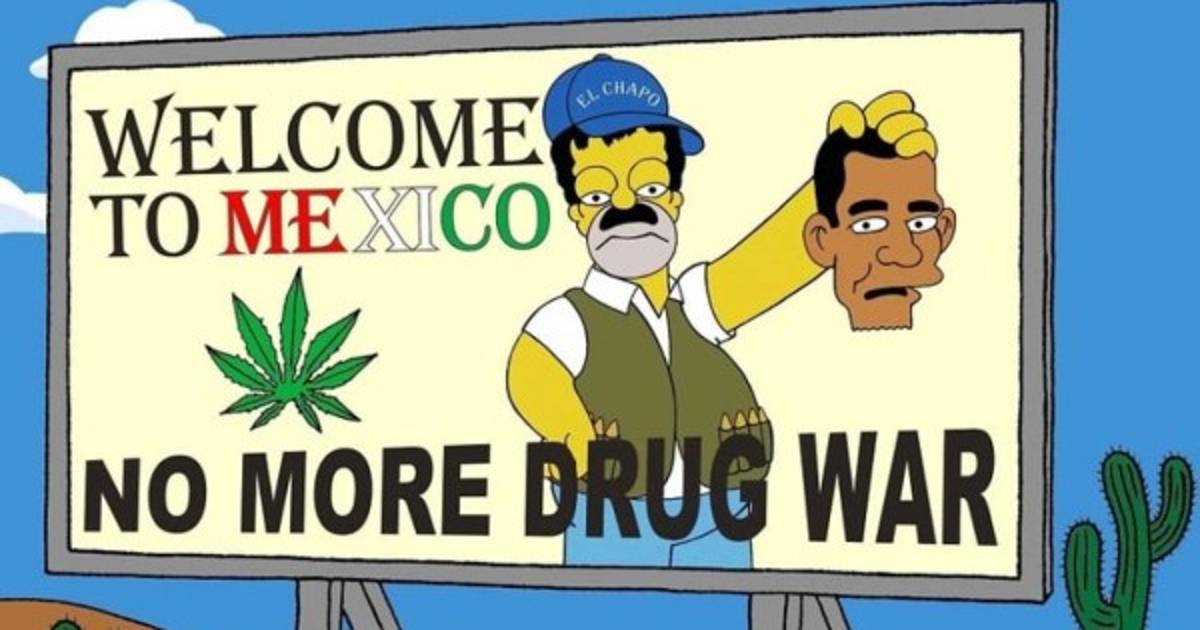 El artista y activista por los derechos humanos Alexsandro Palombo transformó al exlíder del cártel del Pacífico Joaquín “El Chapo” Guzmán en Homero Simpson, para poner sobre la mesa dos temas controversiales: la “guerra” contra las drogas, que en el caso de México ha dejado miles de muertos en los últimos siete años, y la posible legalización de la marihuana.