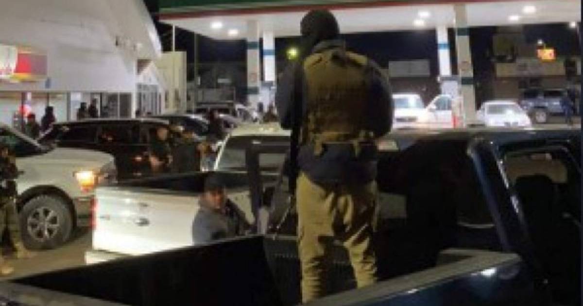 En algunos de los vehículos tipo pick up también se observan hombres armados y encapuchados.