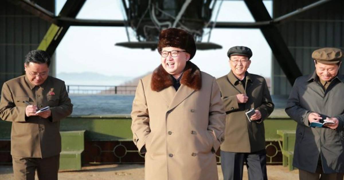 El líder norcoreano Kim Jong-Un asiste a la exitosa prueba de fuego de la superficie- medio-tierra de largo alcance de los misiles balísticos.