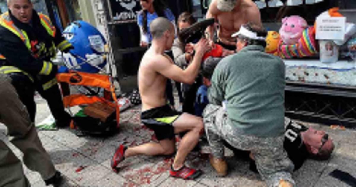 Los Técnicos de Emergencias Médicas provistos con sus equipos empujaban sillas de ruedas vacías; les siguieron pronto doctores con chaquetas blancas de voluntarios. Los competidores continuaban corriendo y paraban sus relojes al cruzar la línea de meta; estaban tan confundidos como agotados.