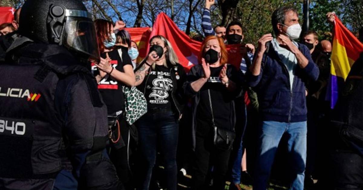 Unos 2,000 manifestantes anti-Vox y la policía protagonizaron fuertes choques durante el acto del partido celebrado al aire libre en Vallecas, un barrio en el sur de la capital española que suele votar mayoritariamente a la izquierda.
