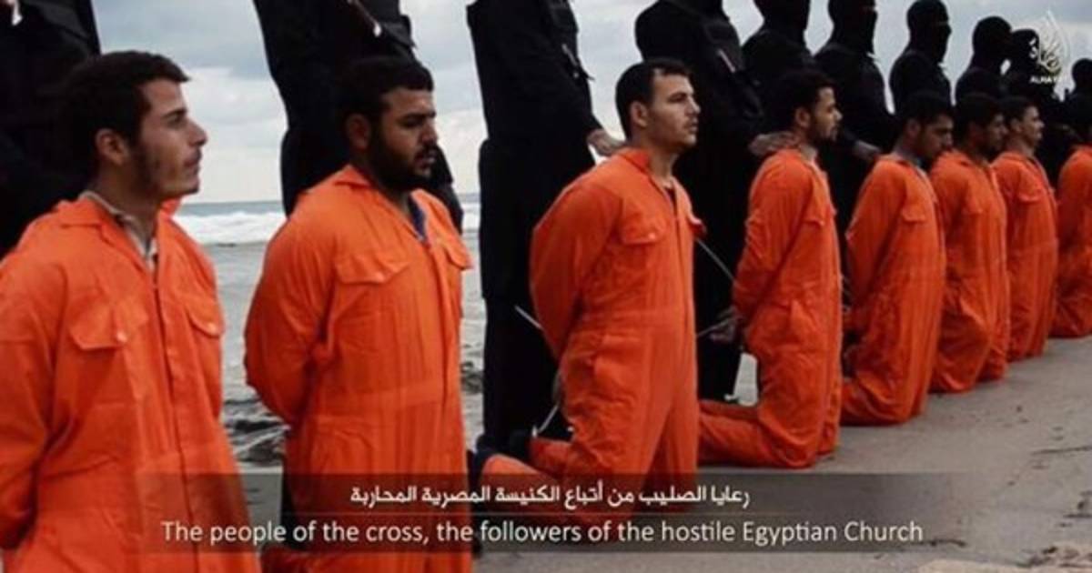 En la grabación difundida por internet, se ve a al menos diez hombres, con vestimentas naranjas, arrodillados y con las manos esposadas en la espalda, decapitados por sus secuestradores, vestidos de negro, en una playa de Trípoli, la capital libia.
