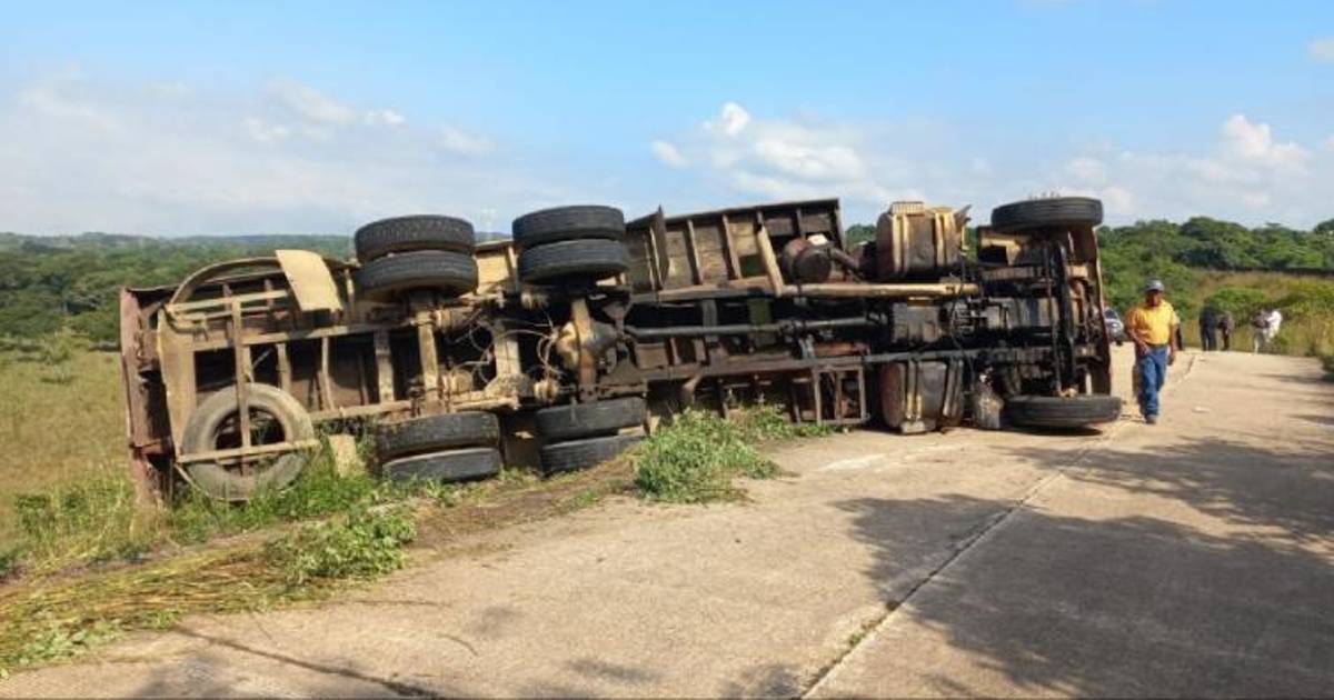 Fue a la altura de la localidad Ceiba Blanca del municipio de Las Choapas donde se volcó un camión, conocido como torton, el cual transportaba en el área de carga a un grupo de migrantes.
