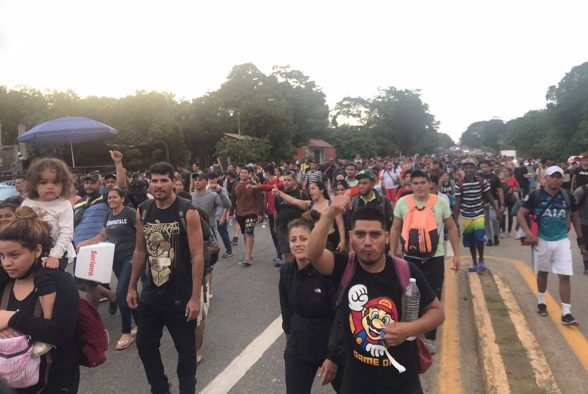 Antes de salir, los migrantes lanzaron un llamado de humanidad para que las organizaciones no gubernamentales y de derechos humanos les ayuden y apoyen con agua y víveres para los 600 niños y 1.200 mujeres que han decidido caminar por sus documentos.