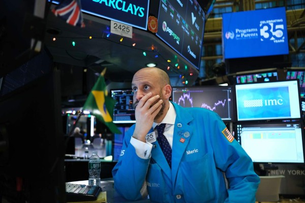 Los comerciantes trabajan en el piso de la Bolsa de Nueva York (NYSE) el 03 de enero de 2020 en la ciudad de Nueva York. Después de la noticia de que el ejército estadounidense mató a Qassem Soleimani, el líder de las fuerzas paramilitares de élite de Irán, las acciones mundiales y los precios del petróleo cayeron con el Dow cayendo más de 220 puntos. Spencer Platt / Getty Images / AFP