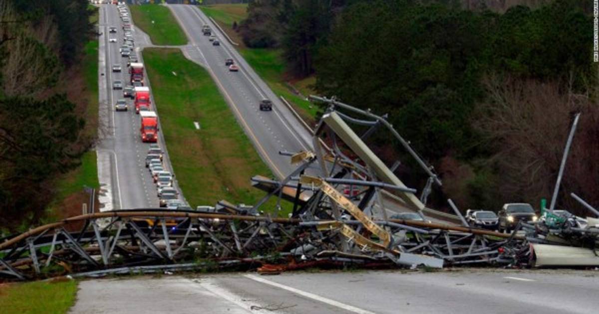 El NWS de Birmingham, Alabama, señaló en Twitter que 'el primer tornado que afectó al condado de Lee hoy tenía al menos un EF-3 y un ancho de al menos media milla'.