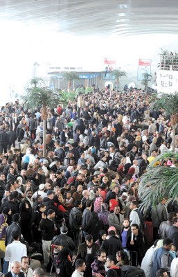 Ríos de personas convergieron en la plaza Tahrir (Liberación), entre ellas muchas personas que desafiaron una paralización del transporte decretada por el gobierno y que llegaron desde la provincias rurales en el Delta del Nilo.
