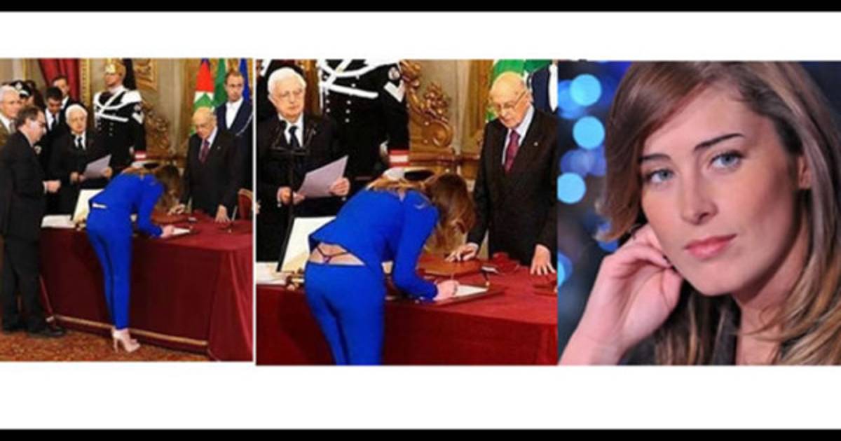 El debate en Twitter y Facebook surgió pocos minutos después de que se hiciera pública la foto de la jura de Maria Elena Boschi como minsitra de Reformas Constitucionales y Relaciones con el Parlamento de Italia. Allí estaba la joven de 33 años, con taconazo, chaqueta un poco corta y pantalón azul estrecho, inclinada sobre la mesa mientras firmaba.