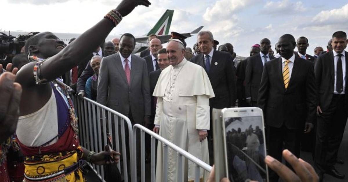 El papa llegó a las 17H00 locales (14H00 GMT) a Nairobi, capital de Kenia, una ciudad adornada con inmensas pancartas, instaladas a lo largo de las avenidas que recorrerá Francisco, para darle la bienvenida en suajili, la lengua que se habla en Kenia.