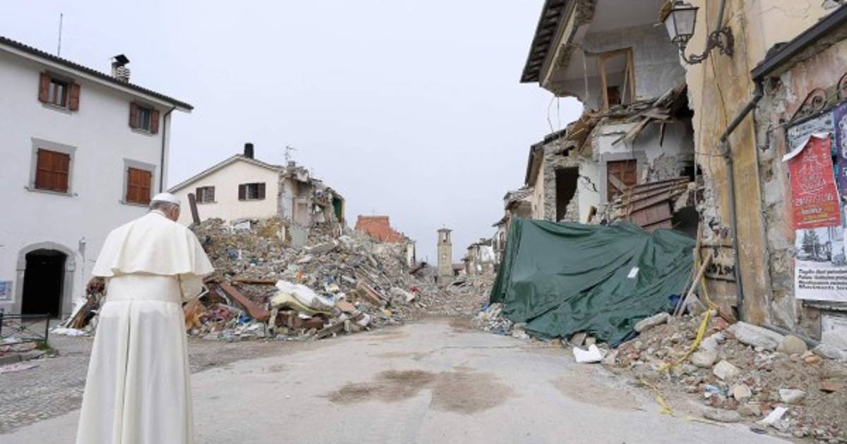 Durante su recorrido estuvo acompañado también por el obispo de Rieti, Domenico Pompili, y por el párroco de Amatrice, Savino D'Amelio.