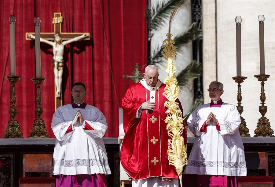 “Nada es imposible para Dios, incluso hacer cesar una guerra de la que no se ve el final”, dijo al término de la misa de Domingo de Ramos, que abre la Semana Santa.