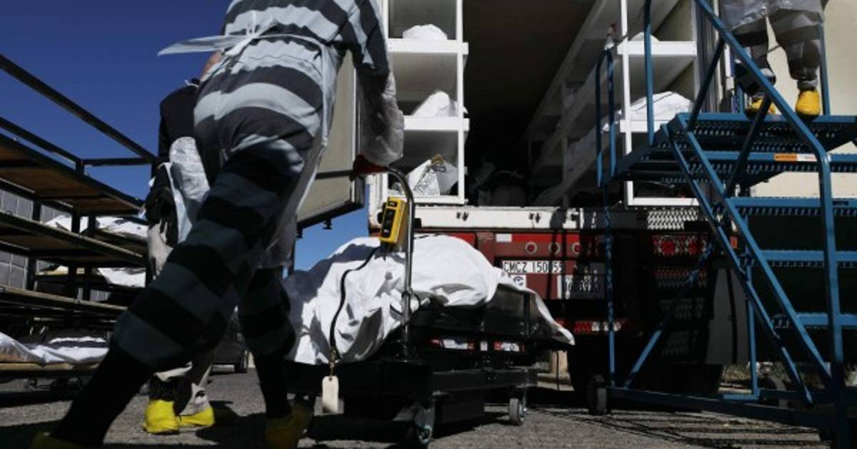 Vestidos con uniformes a rayas, protegidos por tapabocas, guantes y anteojos, los presos de una cárcel de El Paso colaboran con funcionarios de la morgue local, desbordados por la afluencia de cadáveres. Esta ciudad estadounidense está sucumbiendo bajo una avalancha de casos de coronavirus.