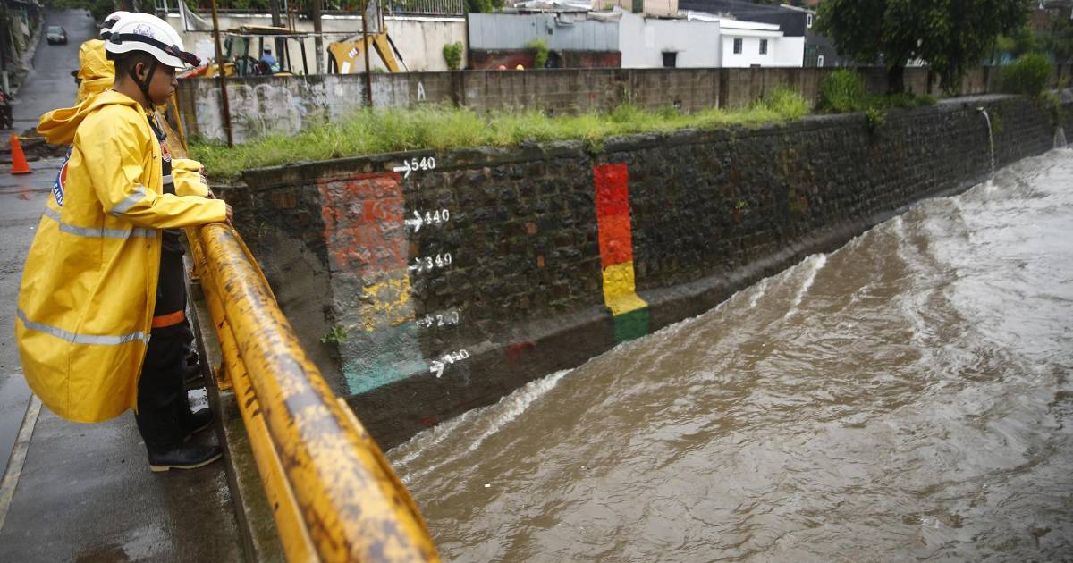 “Ambos sistemas favorecen el ingreso de abundante humedad, desde el Océano Pacifico, hacia nuestro territorio, manteniendo la situación de temporal con lluvias muy fuertes”, añade el MARN.