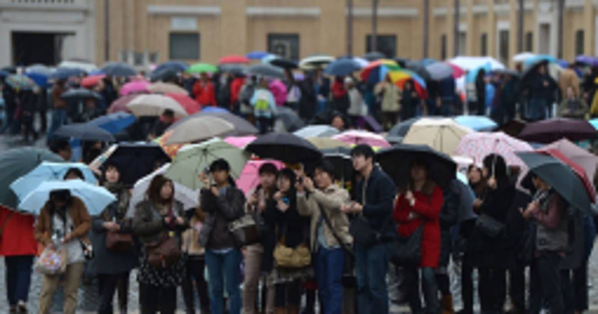 Convertida en 'plaza del mundo', según la expresión de José María Gil Tamayo, el portavoz adjunto del Vaticano, la plaza de San Pedro se cubrió desde la mañana de paraguas y de banderas, en otra jornada en Roma de lluvias intermitentes.