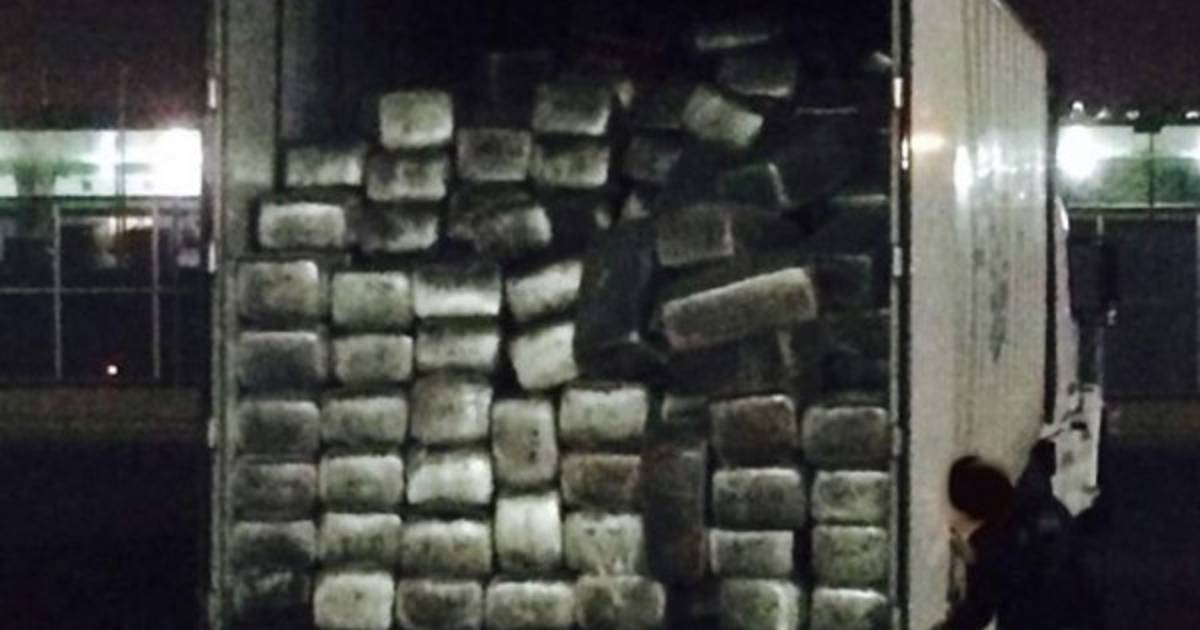 Un oficial abrió las puertas del camión y encontró la hierba envuelta en paquetes de plástico, apiladas hasta el techo: 1.296 en total. Juntos pesaron 14.21 toneladas con un valor estimado de 18 millones 960.000 dólares.