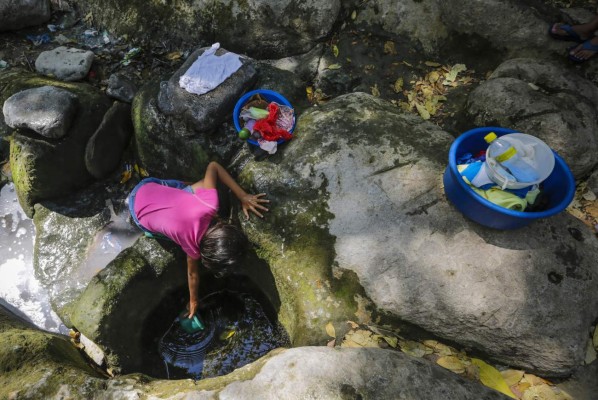 Metida en un “ojo de agua” en medio de enormes piedras, donde antes corría una caudalosa quebrada, Silvia Luna, de 29 años, junto a otras mujeres y niñas, se bañan y lavan ropa. Su casa está a unos 200 metros en una colina pedregosa. “Aquí venimos a lavar y a bañarnos. A veces el pocito está seco y esperamos a que salga agua para hacer nuestras cosas”, dijo Luna mientras se vestía avergonzada ante la llegada de periodistas.
